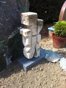 Inmiddels is er een jaar na Hanna’s dood op het graf een ruwe, ongepolijste natuursteen geplaatst, een gepolijst stuk Belgisch hardsteen met een tekst en een beeldje van Piet Mulder dat dertig jaar in zijn tuin heeft gestaan. Een NJN’er, een gestileerd mannetje met een rugzak. Het perkje dat met ruwe keien is gemaakt, zal met bloemen uit de tuin worden gevuld.
